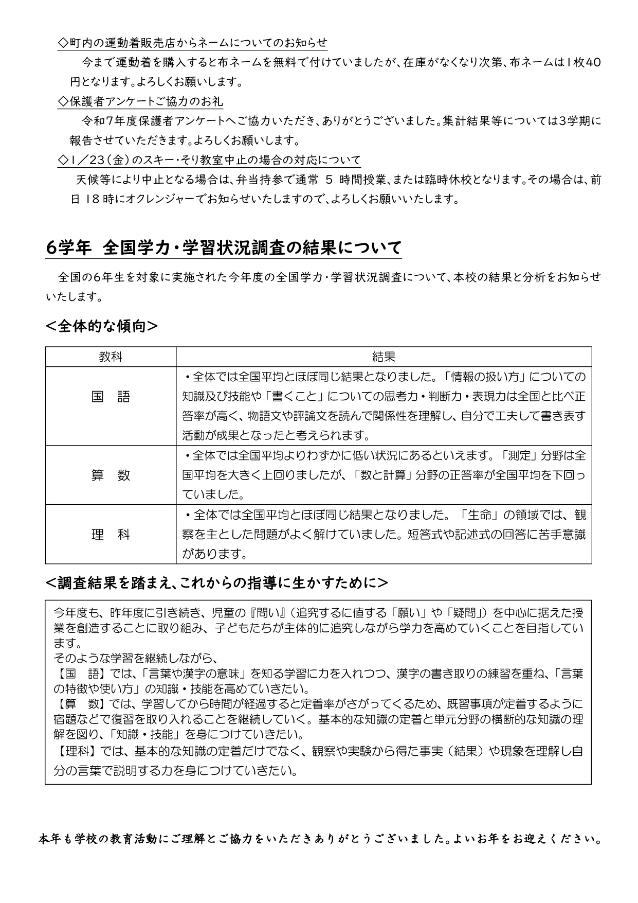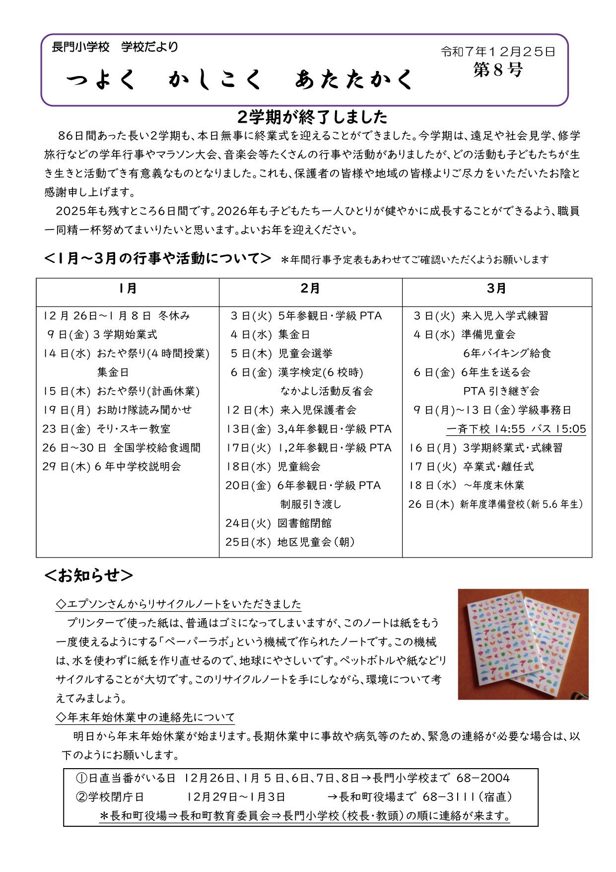 学校だより 令和7年12月25日第8号