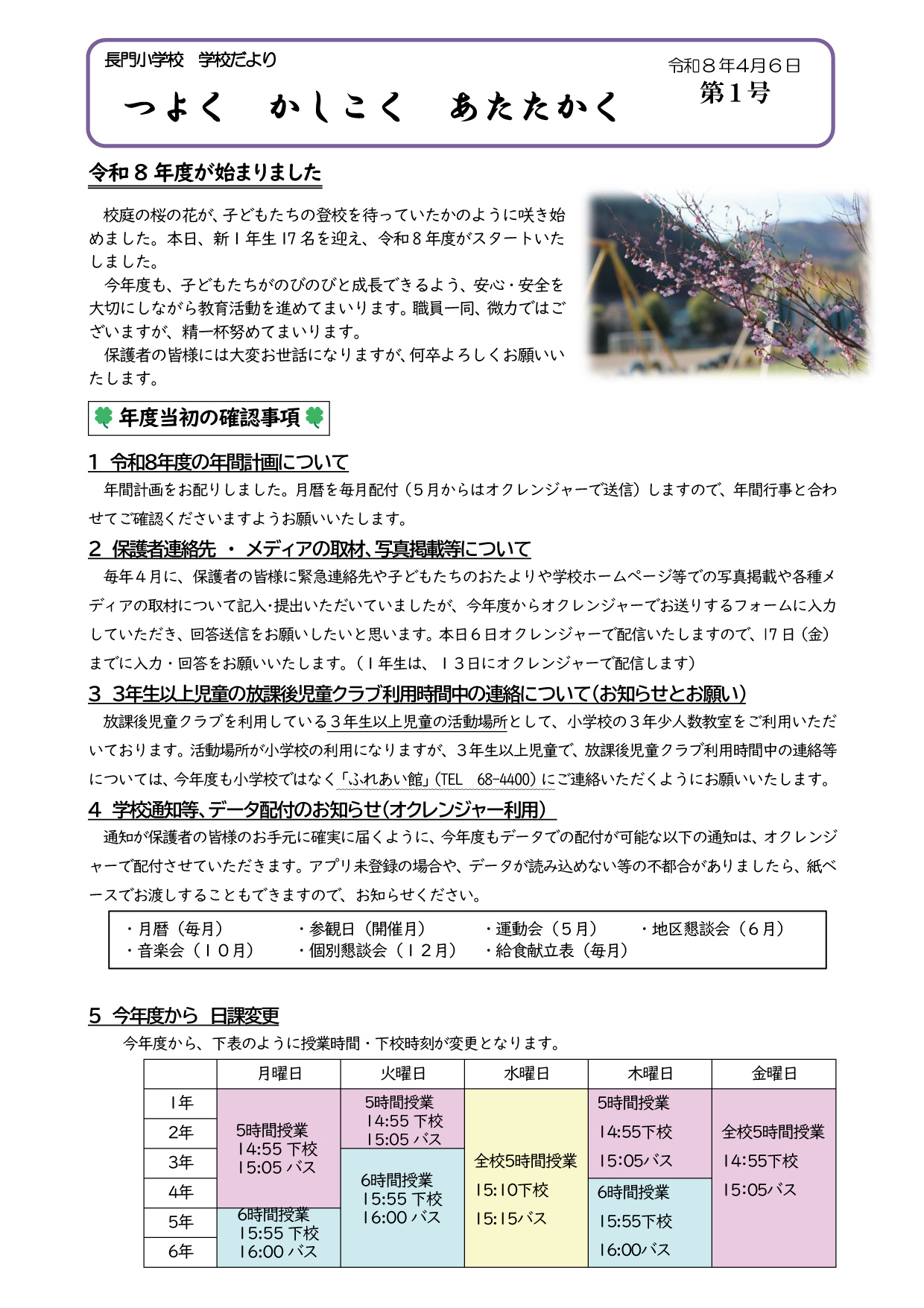 学校だより 令和8年4月6日第1号