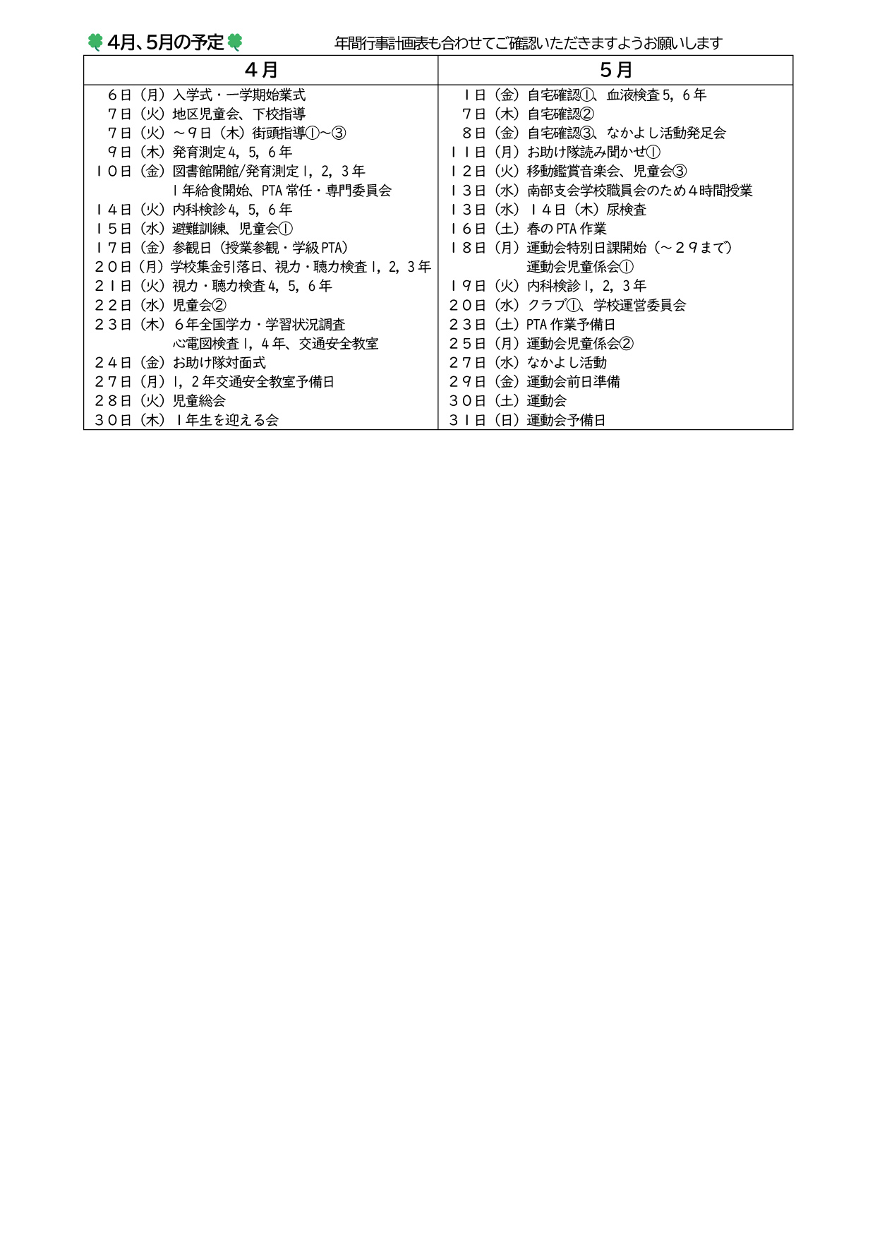 年間行事予定表