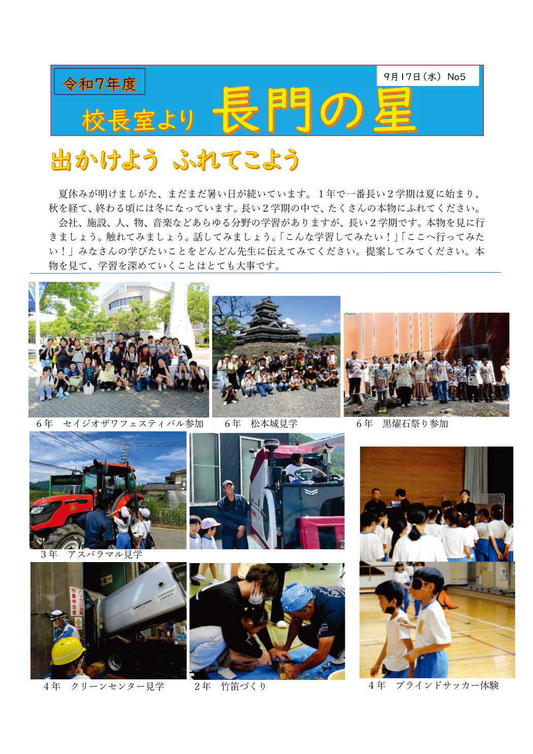 校長室から 校長室から No.6 令和7年10月8日 No.5 令和7年9月17日 No.4 令和7年8月21日 No.3 令和7年6月7日 No.2 令和7年6月5日 No.1 令和7年4月30日 令和6年度の校長室からはこちらから 令和5年度の校長室からはこちらから